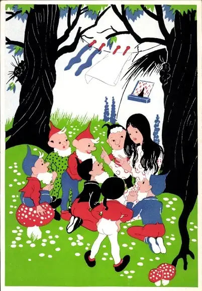 Ak Märchen Schneewittchen, Zwerge, Haus, Wäscheleine