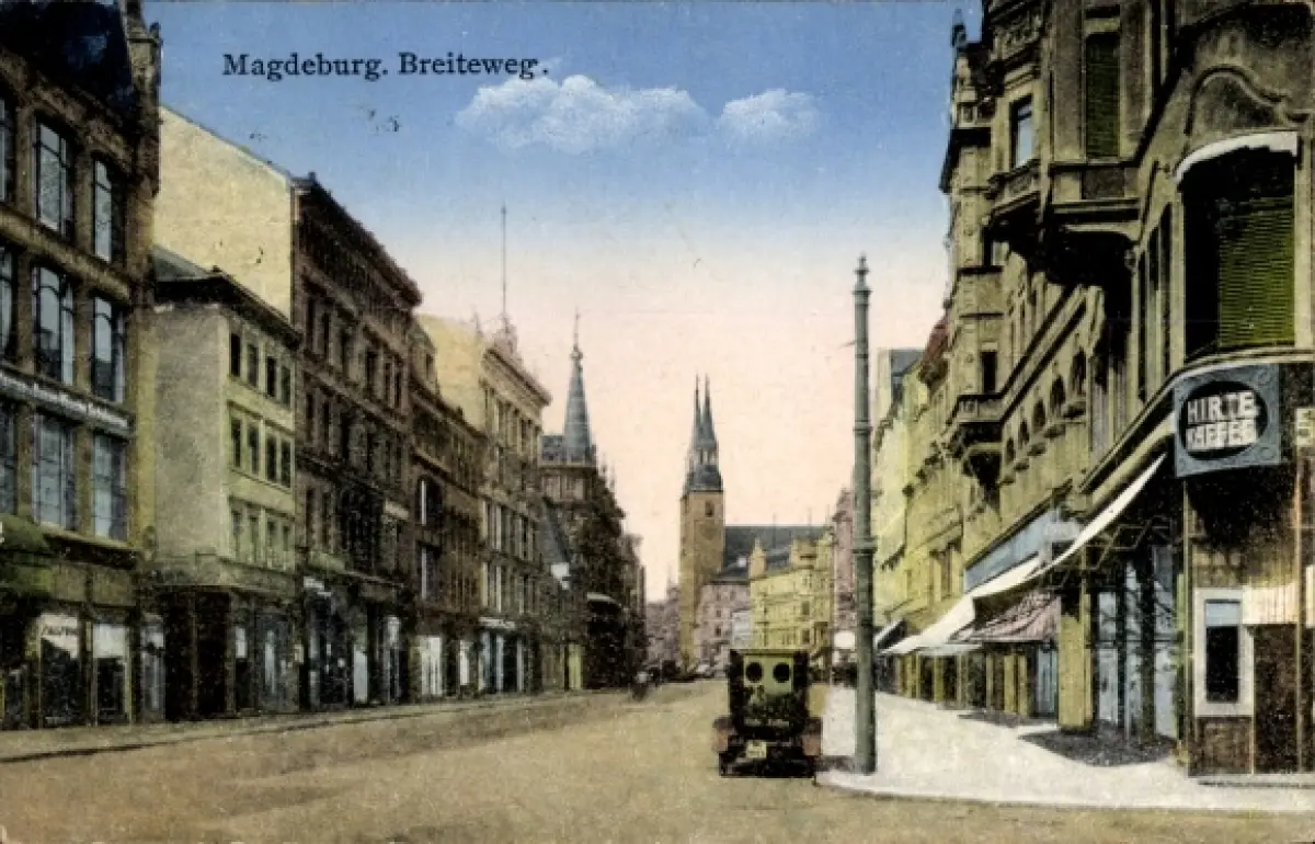Ak Magdeburg, Breiteweg, Hirte Kaffee, Auto, Kirche