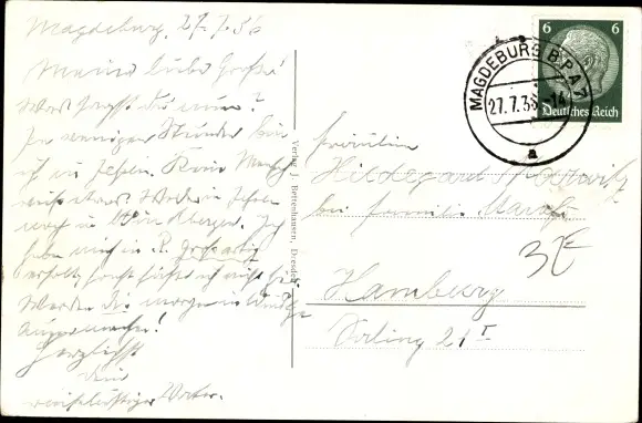 Zustand, siehe Scan, gelaufen, 1936 - ca 14 cm X 10 cm