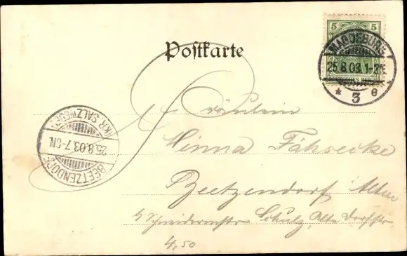 Zustand, siehe Scan, gelaufen, 1903 - ca 14 cm X 9 cm