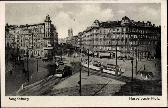 Ak Magdeburg, Hasselbach Platz, Straßenbahnen