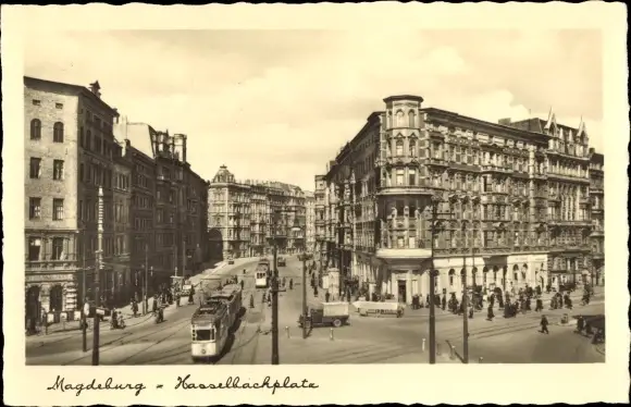 Ak Magdeburg, Hasselbachplatz, Straßenbahn, Passanten
