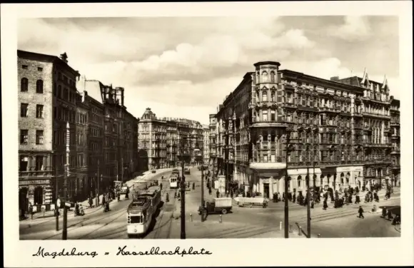 Ak Magdeburg, Hasselbachplatz, Straßenbahn, Passanten