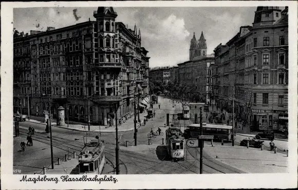 Ak Magdeburg, Hasselbachplatz, Straßenbahnen