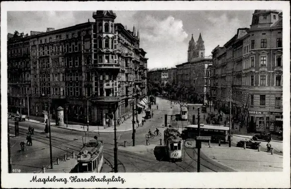 Ak Magdeburg, Hasselbachplatz, Straßenbahnen