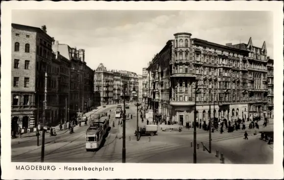 Ak Magdeburg, Hasselbachplatz, Straßenbahnen
