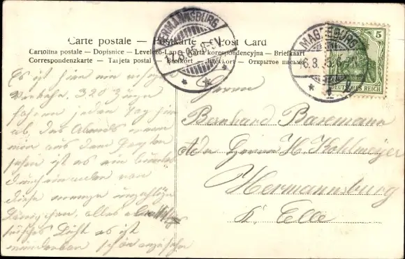 Zustand, siehe Scan, gelaufen, 1905 - ca 14 cm X 9 cm