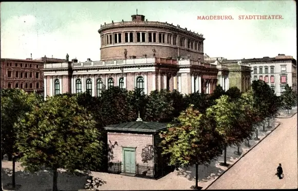 Ak Magdeburg, Stadttheater, Straße