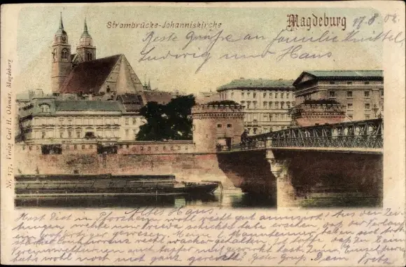 Ak Magdeburg, Strombrücke, Johanniskirche