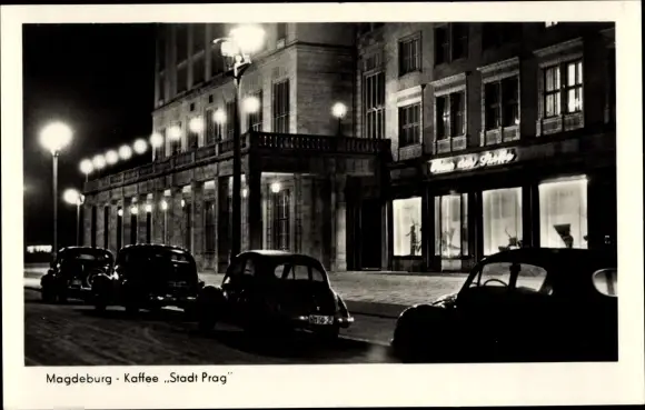 Ak Magdeburg, Wilhelm Pieck Allee, Kaffee Stadt Prag, Haus der Stoffe