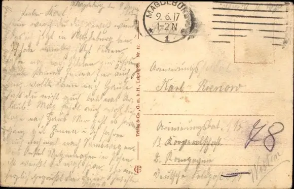 Zustand, siehe Scan, gelaufen, 1917 - ca 14 cm X 9 cm