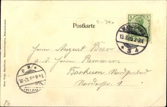Zustand, siehe Scan, gelaufen, 1903 - ca 14 cm X 9 cm