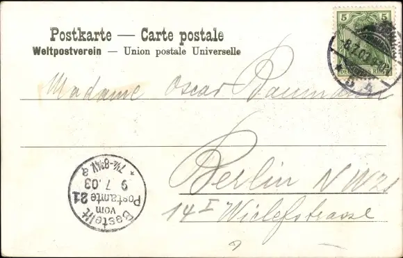 Zustand, siehe Scan, gelaufen, 1903 - ca 14 cm X 9 cm