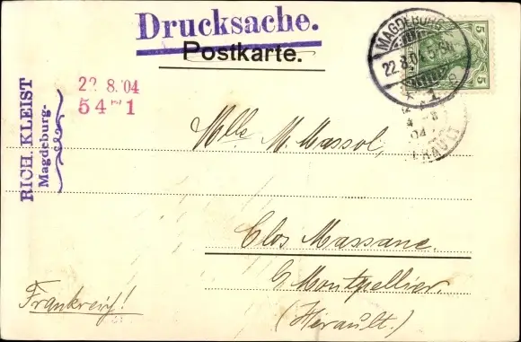 Zustand, siehe Scan, gelaufen, 1904 - ca 14 cm X 9 cm