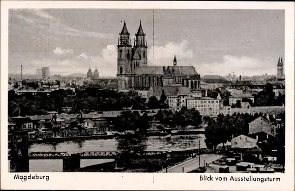Ak Magdeburg an der Elbe, Blick vom Ausstellungsturm, Brücke, Panorama