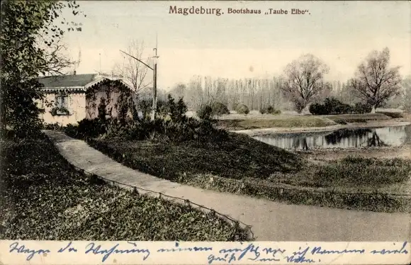 Ak Magdeburg an der Elbe, Bootshaus Taube Elbe