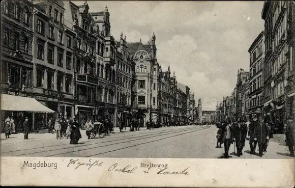 Ak Magdeburg an der Elbe, Breite Weg, Passanten, Geschäfte