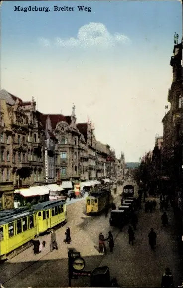 Ak Magdeburg an der Elbe, Breiter Weg, Straßenbahn