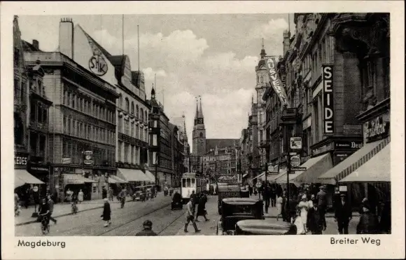 Ak Magdeburg an der Elbe, Breiter Weg, Straßenbahn, Geschäft Seide