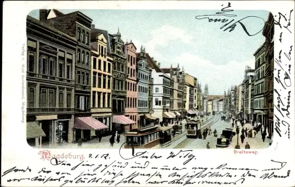 Ak Magdeburg an der Elbe, Breiteweg, Straßenbahn