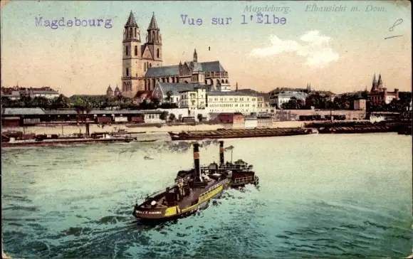 Ak Magdeburg an der Elbe, Dampfer, Dom