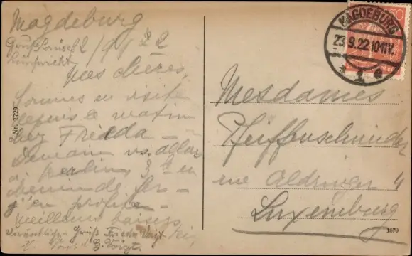 Zustand, siehe Scan, gelaufen, 1922 - ca 14 cm X 9 cm