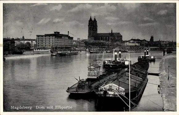 Ak Magdeburg an der Elbe, Dom, Elbpartie