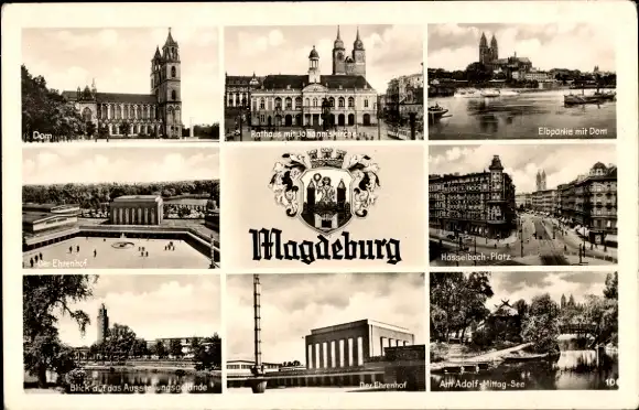 Ak Magdeburg an der Elbe, Dom, Hasselbach Platz, Ehrenhof, Rathaus, Adolf Mittag See