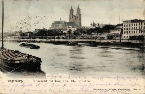 Ak Magdeburg an der Elbe, Dom von osten, Elbufer