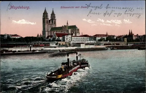 Ak Magdeburg an der Elbe, Elbansicht, Dom, Dampfschiff