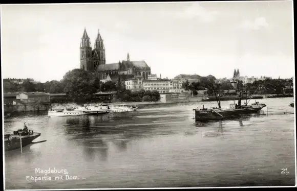 Ak Magdeburg an der Elbe, Elbpartie mit Dom, Schiffe