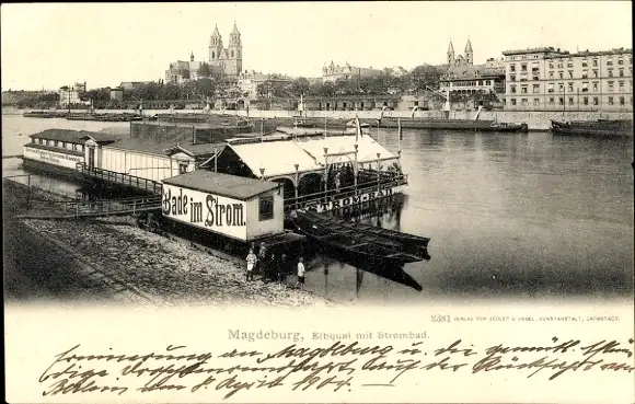 Ak Magdeburg an der Elbe, Elbquai mit Strombad