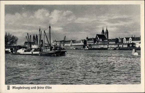 Ak Magdeburg an der Elbe, Elbufer, Segelschiff