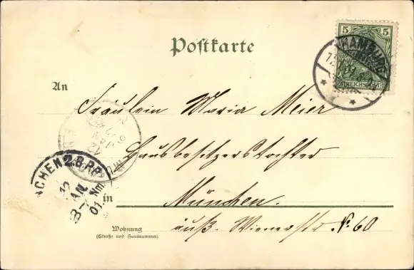 Zustand, siehe Scan, gelaufen, 1901 - ca 14 cm X 9 cm