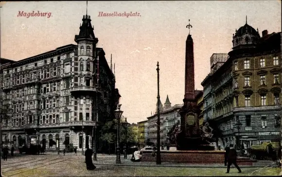 Ak Magdeburg an der Elbe, Hasselbachplatz, Säule