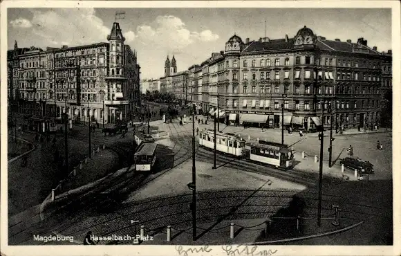 Ak Magdeburg an der Elbe, Hasselbachplatz, Straßenbahn
