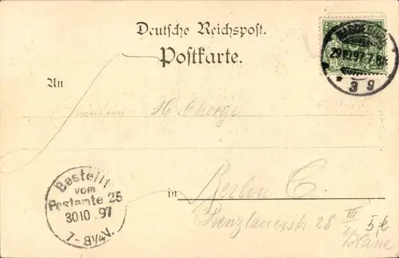 Zustand, siehe Scan, gelaufen, 1897 - ca 5 cm X 3 cm