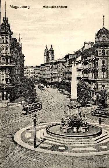 Ak Magdeburg an der Elbe, Hasselbachplatz, Straßenbahn