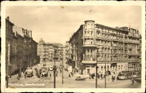 Ak Magdeburg an der Elbe, Hasselbachplatz, Straßenbahnen