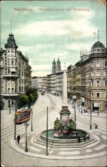 Ak Magdeburg an der Elbe, Hasselbachplatz mit Breiteweg