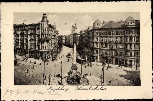 Ak Magdeburg an der Elbe, Hasselbachplatz mit Brunnen