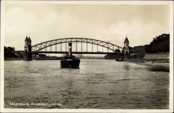 Ak Magdeburg an der Elbe, Hindenburgbrücke, Dampfer Nobe