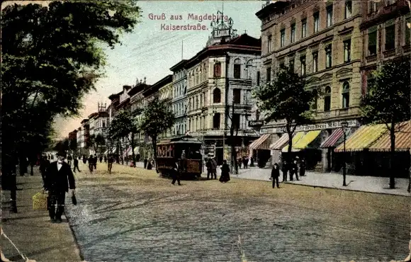 Ak Magdeburg an der Elbe, Kaiserstraße, Straßenbahn