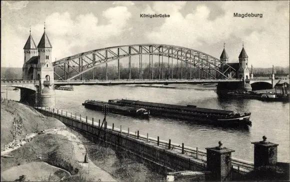 Ak Magdeburg an der Elbe, Königsbrücke, Lastkahn