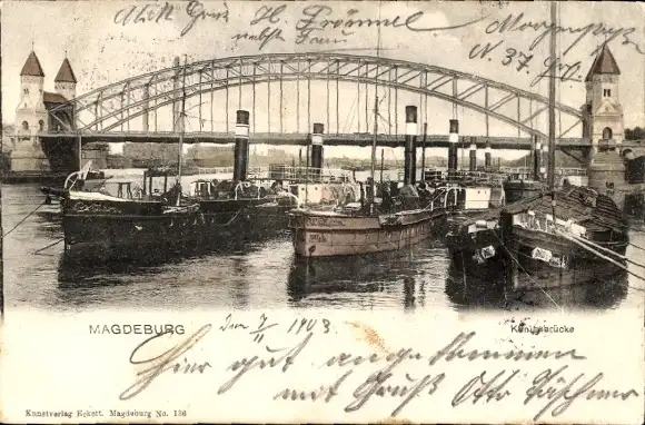 Ak Magdeburg an der Elbe, Königsbrücke, Schiffe