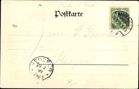 Zustand, siehe Scan, gelaufen, 1899 - ca 14 cm X 9 cm