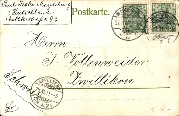 Zustand siehe Scan, 1901, gelaufen - ca 14 cm X 9 cm