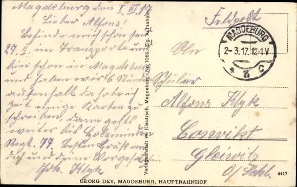 Zustand, siehe Scan, gelaufen, 1917 - ca 14 cm X 9 cm