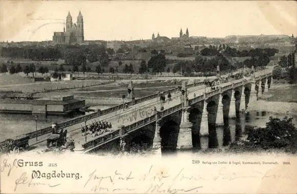 Ak Magdeburg an der Elbe, Panorama, Brücke