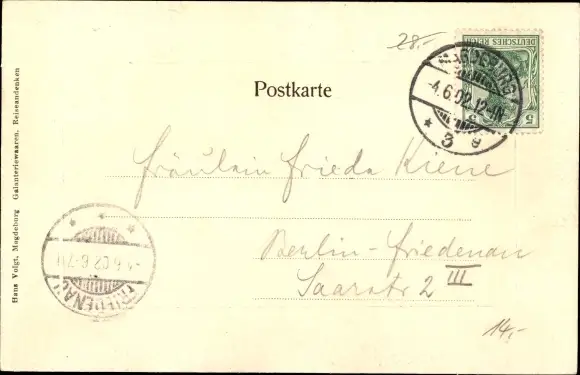 Zustand, siehe Scan, gelaufen, 1902 - ca 14 cm X 9 cm